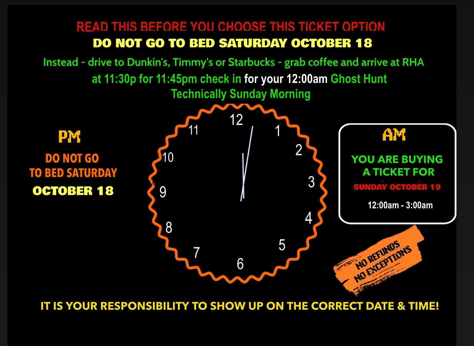 • Oct 19 October 19, 2025 - Dead Time Self Guided Ghost Hunt - $69p - (25 tix left as of 10/17 - 7pm)