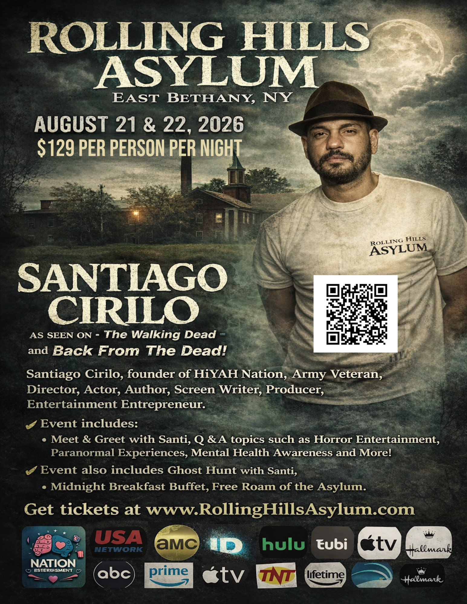 August 21, 2026 - Santiago Cirilo, as seen on The Walking Dead and Back from the Dead! 5:30p - 2:30a -$129